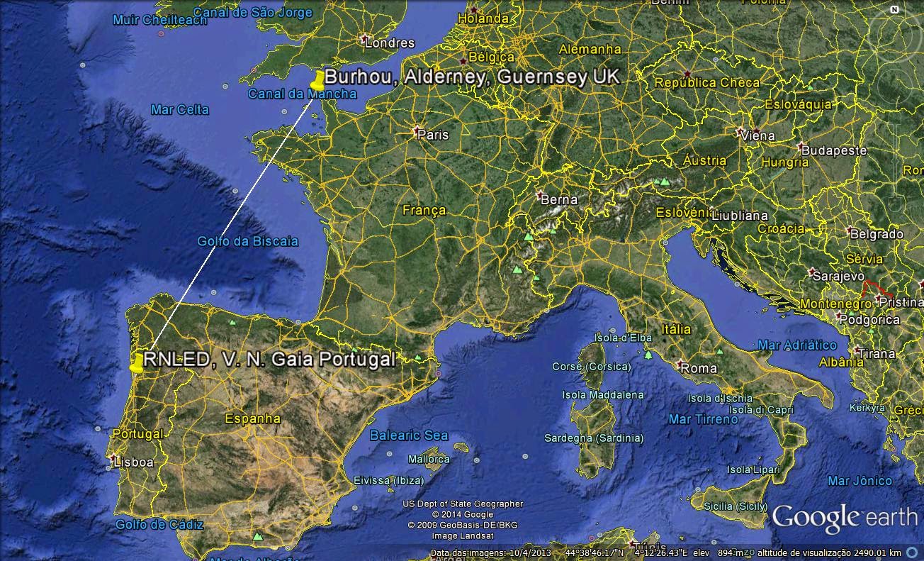 A distância do local de anilhamento é mais ou menos 1077 Km em linha recta.