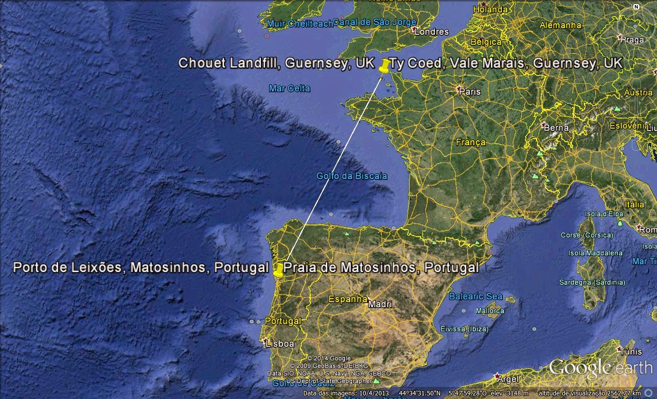 A distância do local de anilhamento é mais ou menos 1247 Km em linha recta.